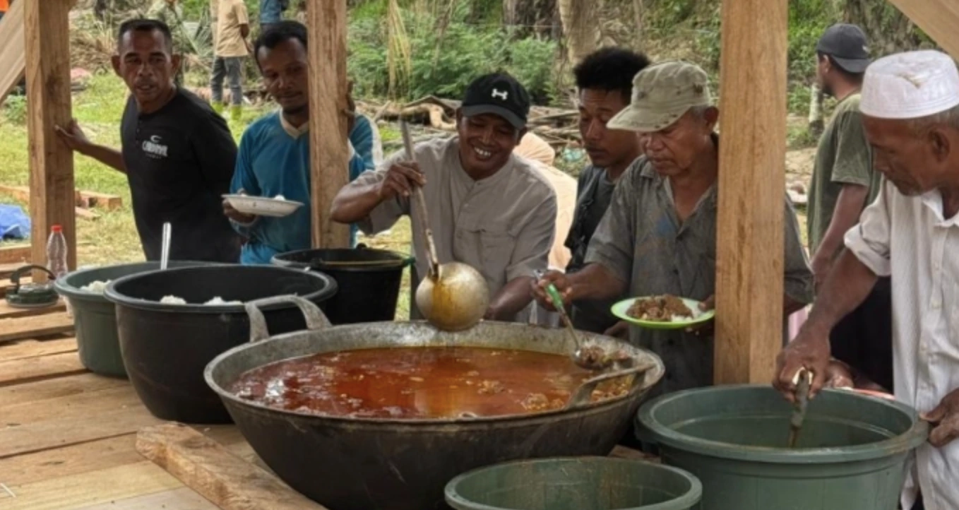 Di Desa Geudumbak, Kecamatan Langkahan, Kabupaten Aceh Utara, warga kembali memasak Kuah Beulangong dalam wajan besar menggunakan kayu bakar. Aroma masakan khas Aceh itu mengepul di tengah permukiman yang sebagian masih dalam tahap pemulihan. Tradisi menyambut bulan suci Ramadhan tersebut tetap berlangsung meriah, menjadi simbol semangat bangkit dan kebersamaan masyarakat.